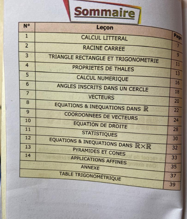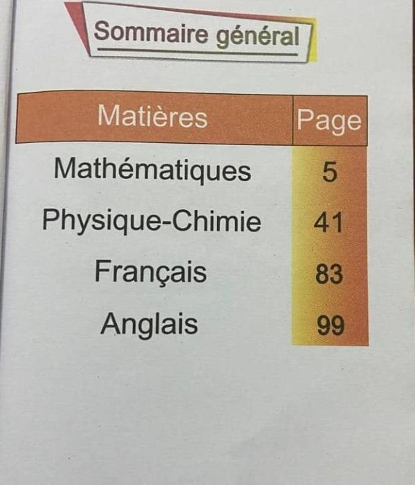 Ce support s’adresse aux élèves en classe d’examen, aux enseignants et à toute personne souhaitant disposer d’un outil simple pour revoir l’essentiel des disciplines principales du BEPC.